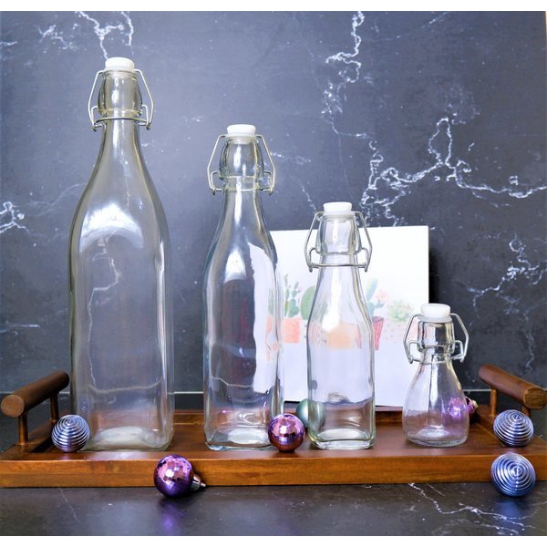 Botol Bormioli Swing Kotak 1 Liter | Botol Kaca 1000 mL Tutup Kait | Botol 1 liter